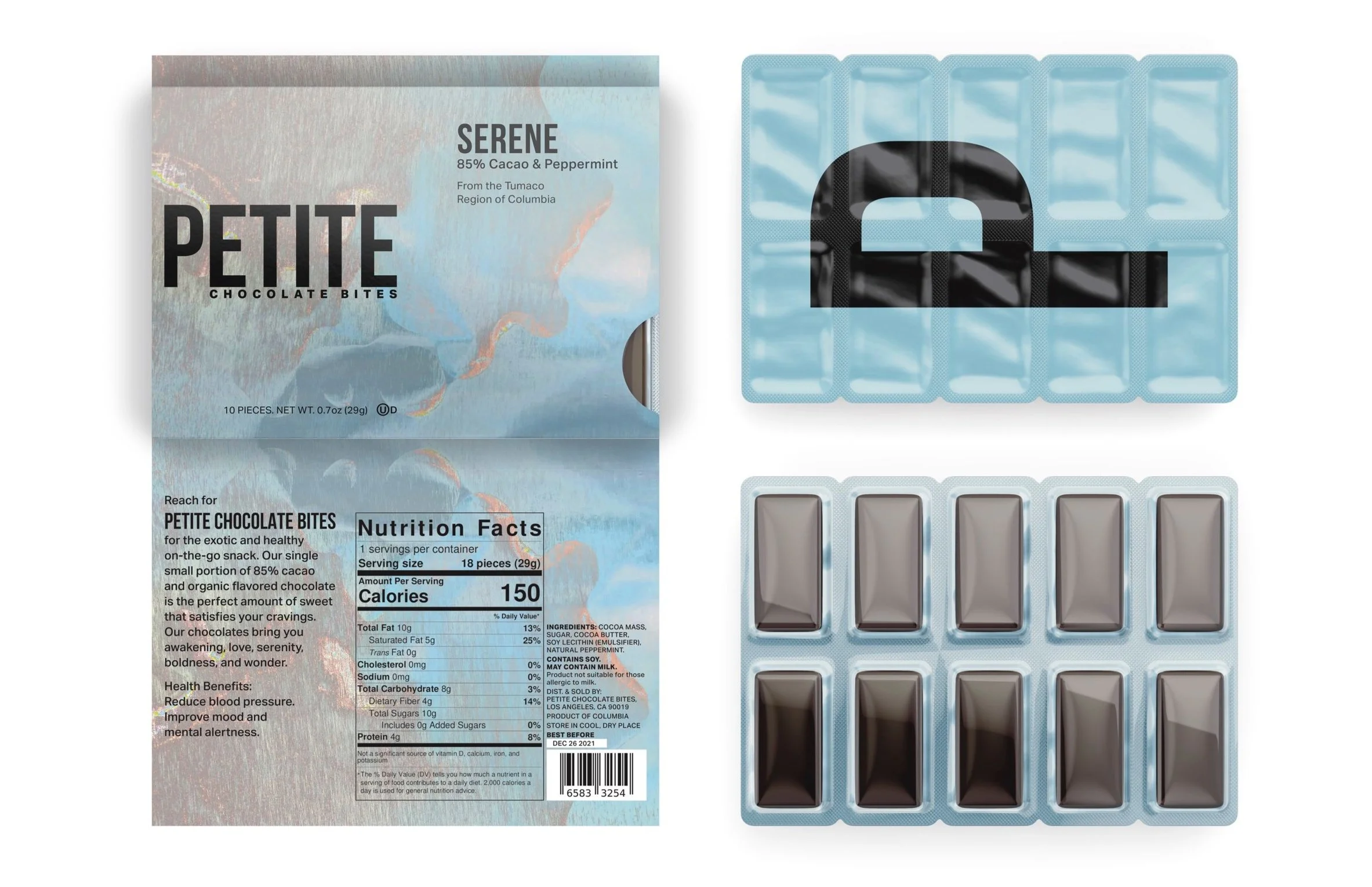 Petite Chocolate Bites is a chocolate brand that changes people's chocolate consumption habits through product size and packaging. The healthy on-the-go snack with 85% cacao and organic flavored chocolates brings customers awakening, love, serenity, boldness, and wonder.