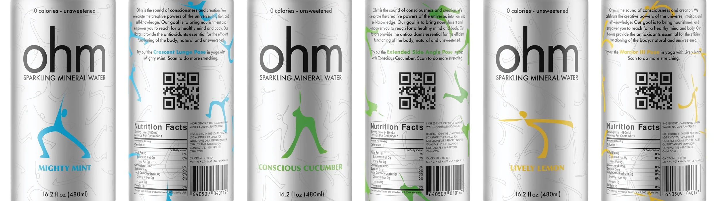 Ohm is a sparkling mineral water brand that promotes body wellness by encouraging stretching while sipping. Each natural flavor pairs with a stretching pose.