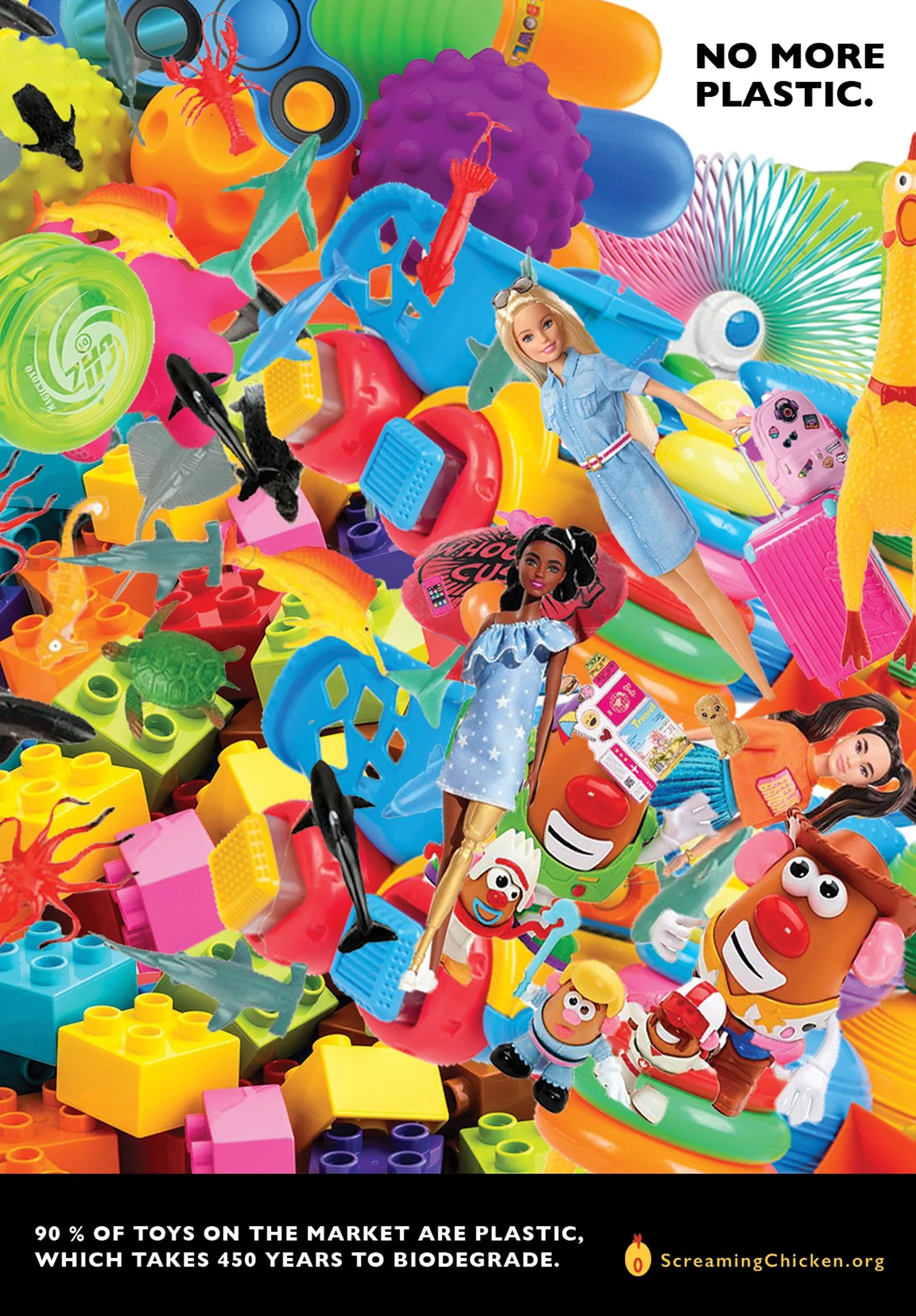 ScreamingChicken.org is an organisation that raises awareness of plastic waste generated in the toy industry. The goal is to influence consumer behaviors on purchasing product decisions and reduce human impact on the environment.
