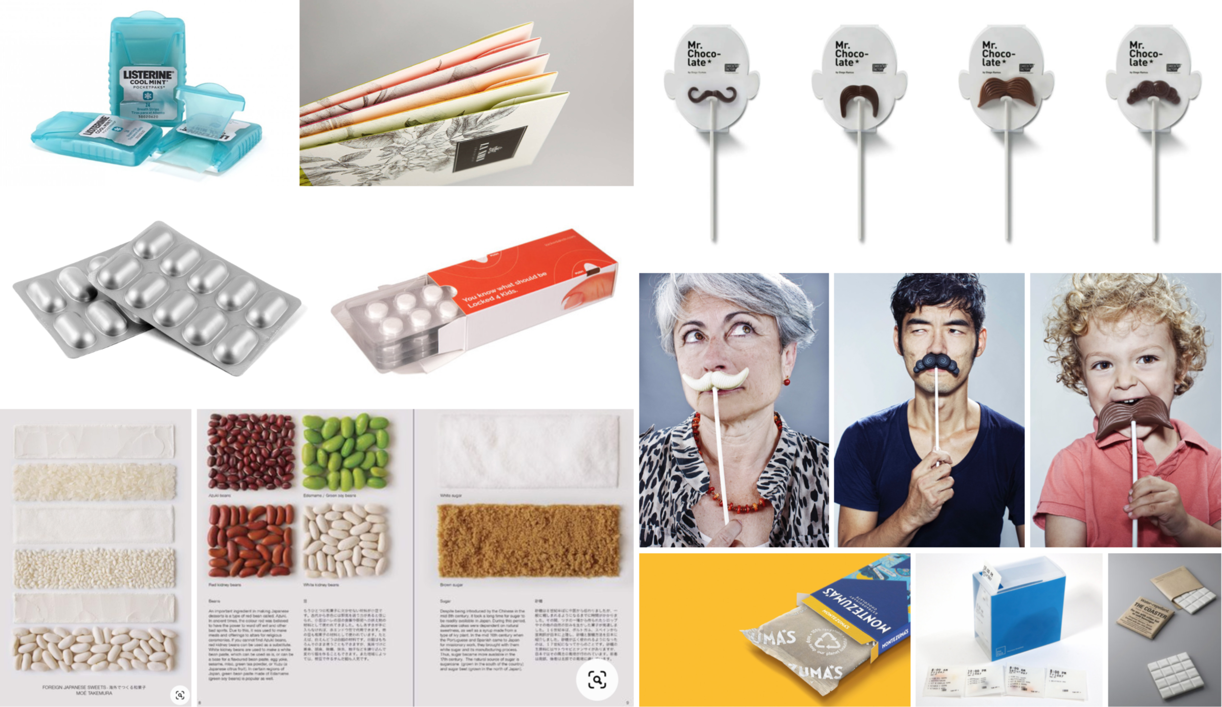 I looked at small portion packagings - mint paper and pill blisters - interactive food products, and environmentally friendly paper packagings.
