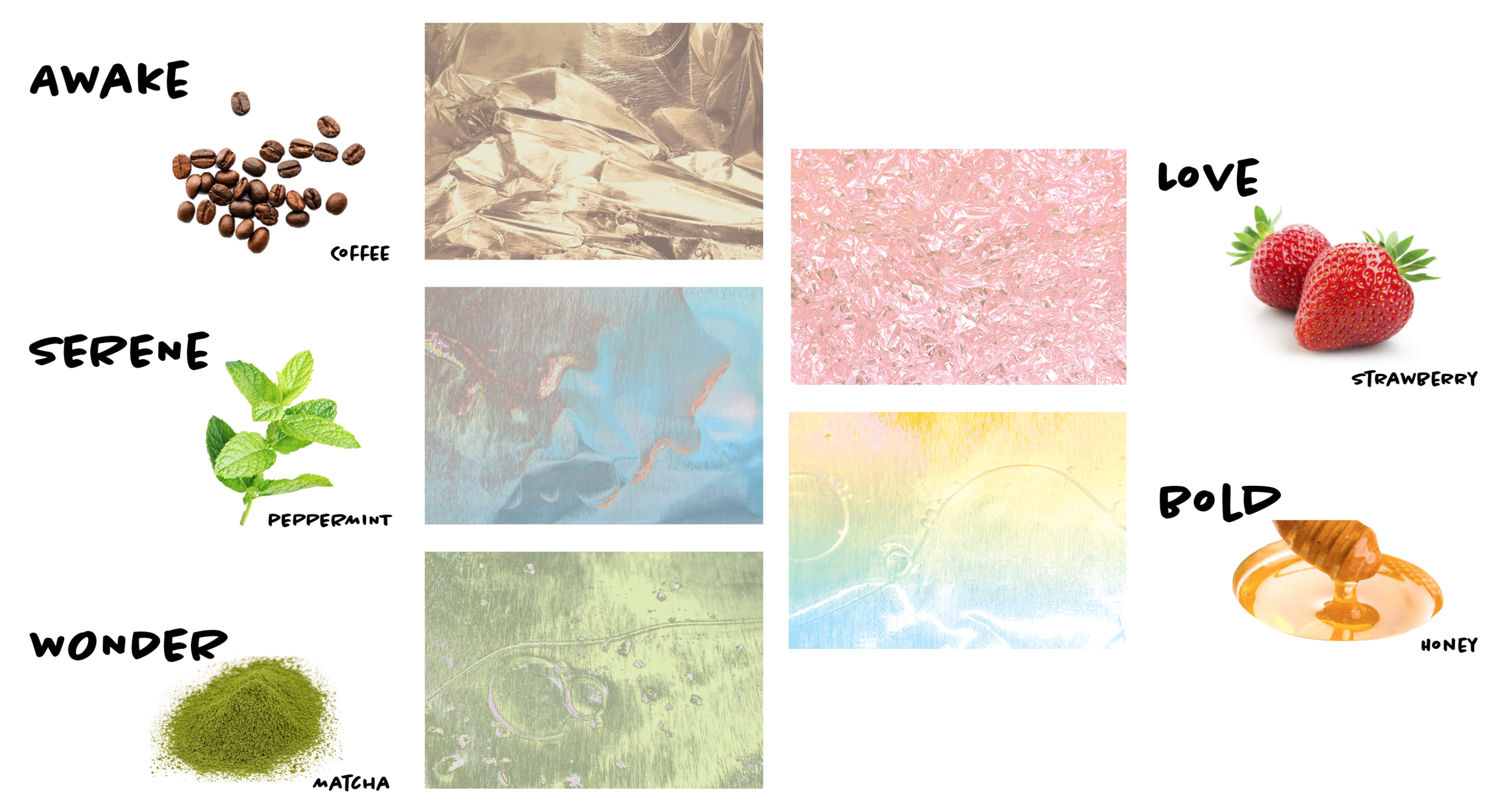 Awake / Sharp Edges — Serene / Smoothing Fluid — Wonder / Bumpy Ground